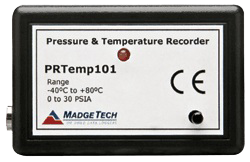 The PRTemp101 is a miniature, battery powered, stand alone pressure and temperature data logger. This is an all-in-one compact, portable, easy to use device that will measure and record data for up to 8,191 measurements per channel. The storage medium is non-volatile solid state memory, providing maximum data security even if the battery becomes discharged. The device can be started and stopped directly from your computer and its small size allows it to fit almost anywhere. The PRTemp101 makes data retrieval quick and easy. Simply plug it into an empty COM or USB port and our user-friendly software does the rest.