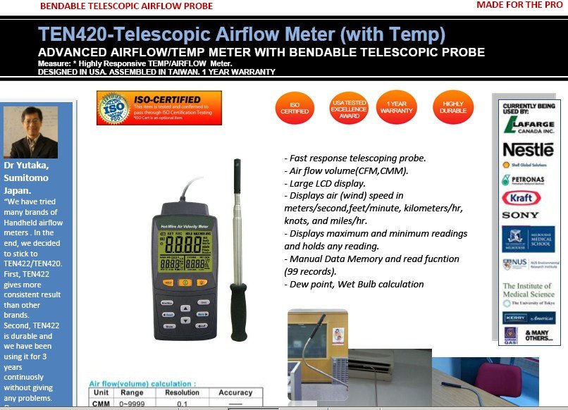 TEN420 ADVANCED AIRFLOW/TEMP BENDABLE TELESCOPIC AIRFLOW METER (TEMP,AIRFLOW)