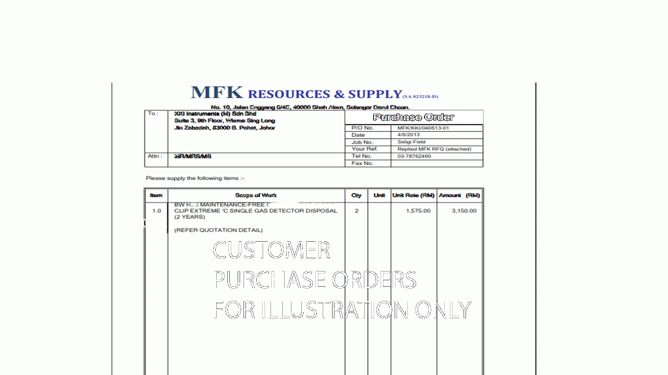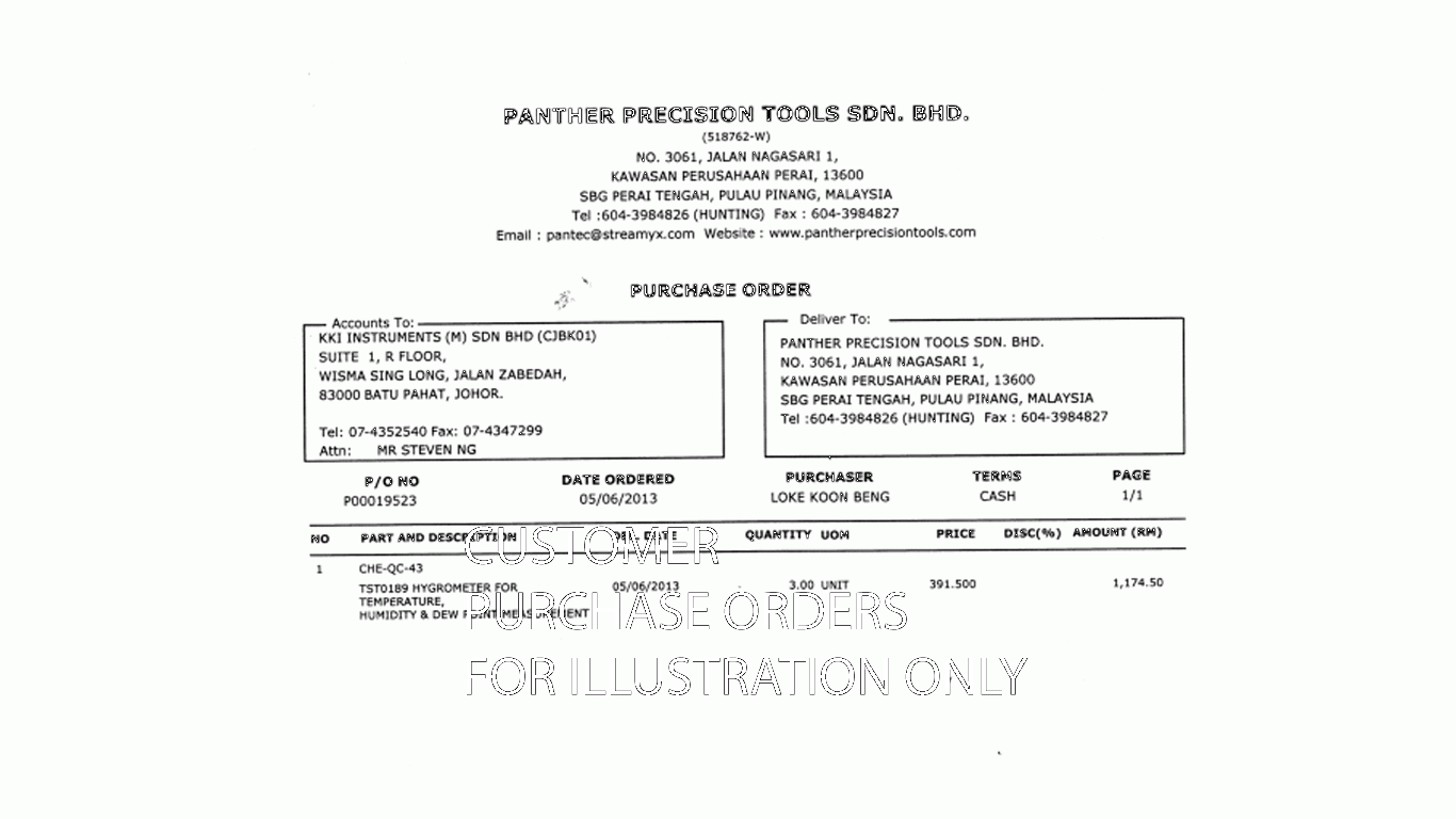 Here are some of the REAL orders issued by various customers. Customers includes MNCs, SME, Universities..etc. Trust the big MNCs. Trust KKInstruments. Give us a try now.