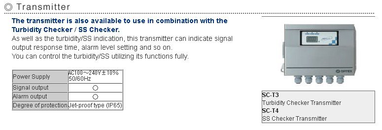 The transmitter is also available to use in combination with the Turbidity Checker / SS Checker.