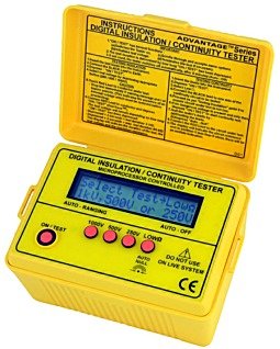 ● Microprocessor-controlled with advanced safety features. ● Three test voltages : 250 / 500 / 1000V. ● Displays and sound warning if external voltage present. ● Ener-Save™ feature to extend battery life. ● Continuous battery monitoring. ● Auto ranging / auto-null / auto-off. ● Insulation tested at 1mA. ● Built-in carry case, test leads in separate pouch. ● Real-time barg-raph display of test voltage and voltage decay during discharge. ● Audible and visual message displayed if external voltage is present. ● Large LCD. ● Display can be customized for special orders. ● Continuity buzzer. ● Show test time duration (up to 99.9s) for easy comparison. ● BS 16 edition.